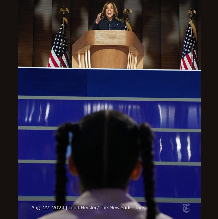 What I found most interesting was what I would describe as the “range of sincerity.” I don’t mean that what was said was ever something Kamala Harris does not now believe. But, some of the answers felt prepared and tested. Her moments of greatest sincerity came around her discussion of President Biden as well as sharing a reaction to the photo of her niece at the Convention. There was just more emotion, for me at least, as she spoke of the call on that Sunday when she learned from Joe Biden that he would not run again (Part 3) and when she was asked what a unique photograph from the Convention meant to her.